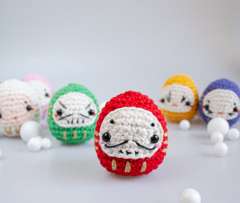 Stitched with love and imbued with wishes, these crocheted darumas are here to bring you luck and inspire your dreams.