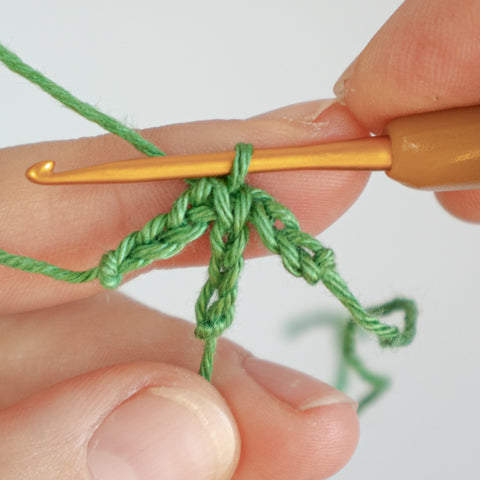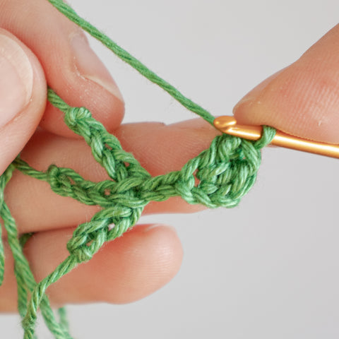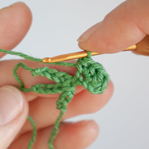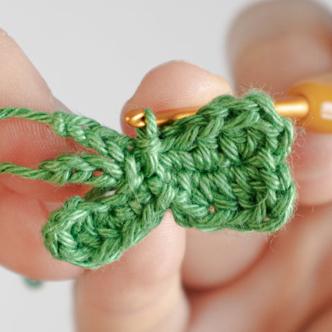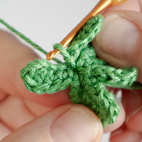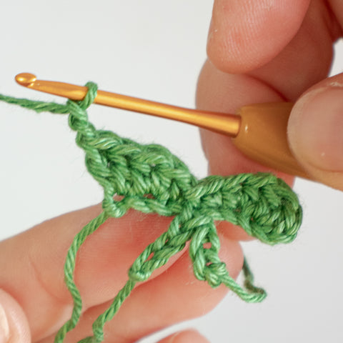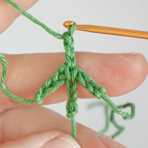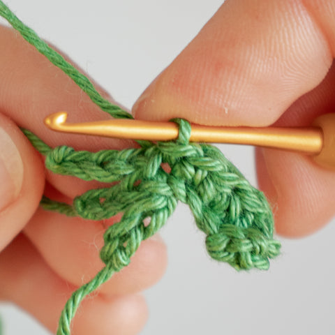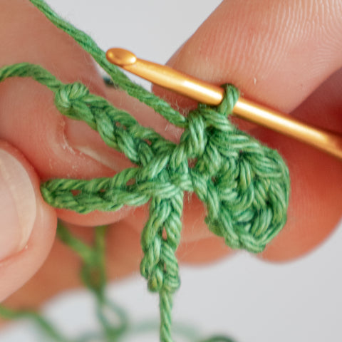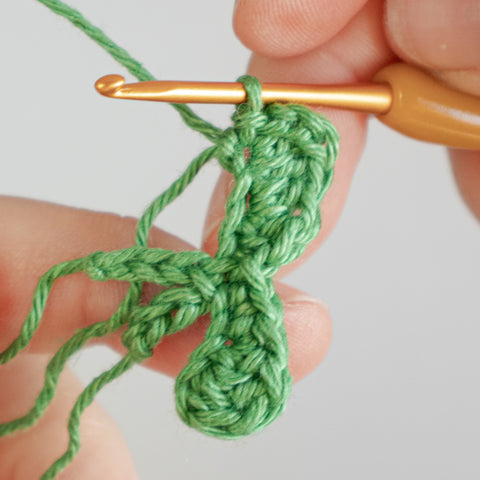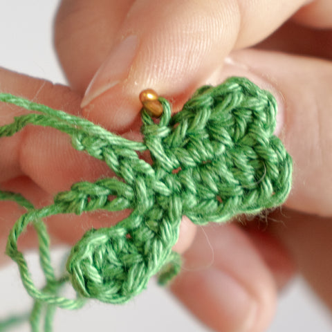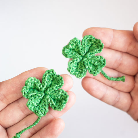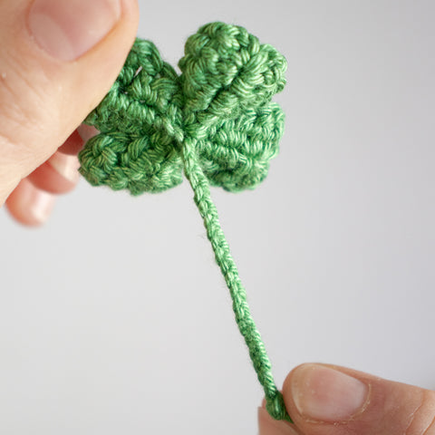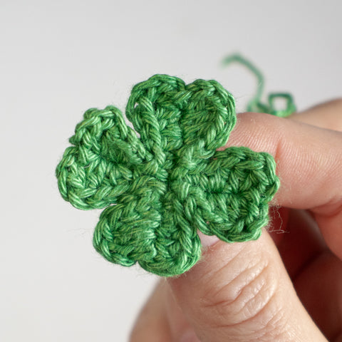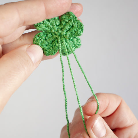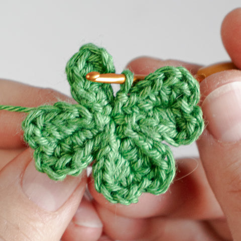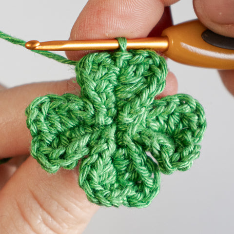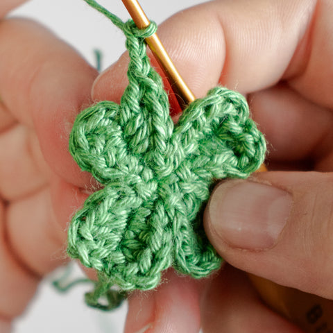 Tip: Carry the yarn end of the chain(s) towards the center of the clover leaf as you go, or run the ends towards the center using a yarn needle when the leaf is finished.