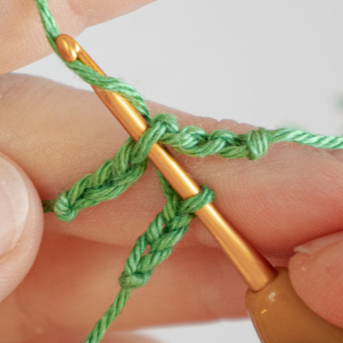 Leave a long initial tail and make another foundation chain of ch 3.