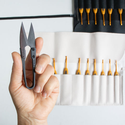 This fabulous set also includes a sleek minimalist thread snip for clean cuts, along with a long doll needle.