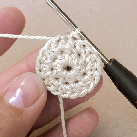 02. ch 2 (counts as 1 st), [hdc-inc] 9x, slst 1 into the top of the beginning-ch-2 to close the rnd (18)
