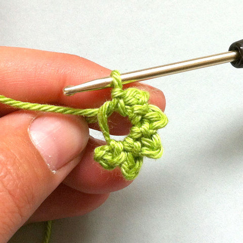 With green make a foundation chain of 6 ch. Starting in the 2nd ch from hook, work along the chain: