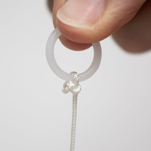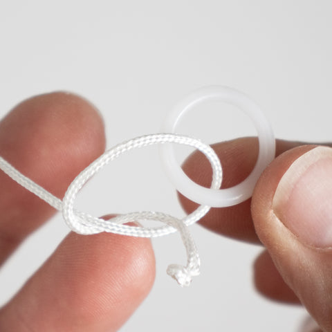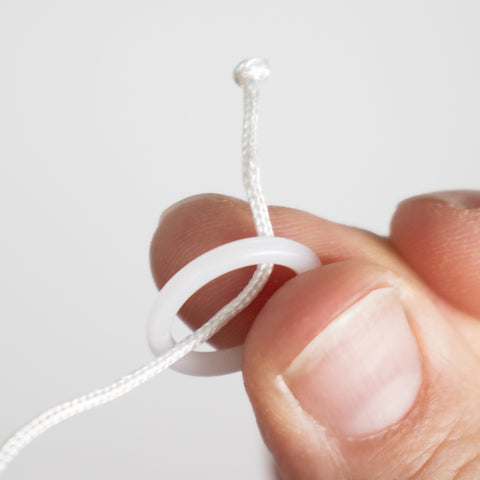 Reattach the ring to the end of the pull cord (refer to gallery above) and remove the stitch marker which is holding back the from the cord.