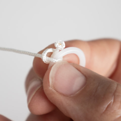 Then, pull the end of the pull cord of the box through the center of the magic loop at the tip of the head, from inside to outside.