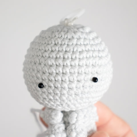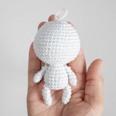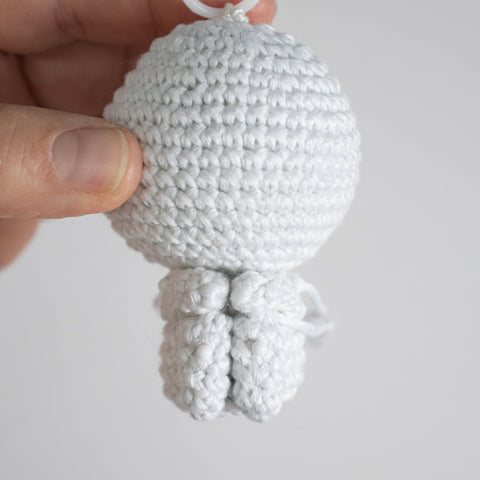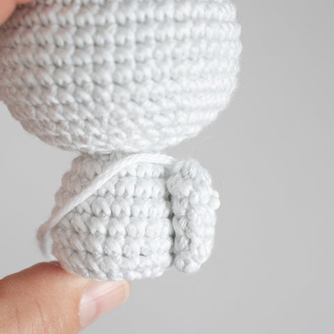 Standing Kodama & Sitting Kodama - Version 02: For the arms to be standing vertically on the sides of the body, sew the flat end of the arms onto the body between rnd 01 and 02 of the body