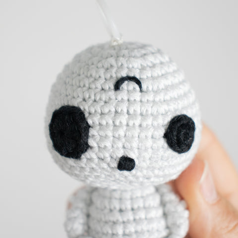 But be prepared! Kodamas only show up to those with a kind and honest heart! Being pure of heart, it won't be hard to find these charming creatures. Made of glow-in-the-dark yarn they will light up the night like tiny neon green moonbeams.