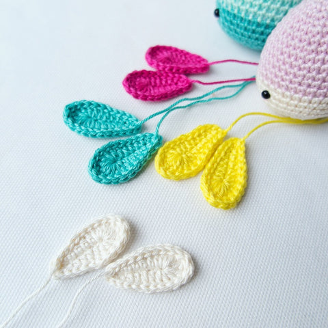 While making up the body, you will learn how to work single crochet stitches in spiral rounds (which is 99% of every amigurumi pattern that you will follow later). For the ears you'll figure out how to crochet a flat piece along a foundation chain. Here's where you'll also gain first experience in making every other basic crochet stitches, such as chain stitch, half double crochet stitch, double and even triple crochet stitches!