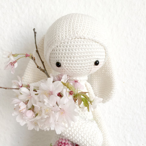 Rita is the granddaughter of the March Hare and niece of the White Rabbit, which erstwhile Alice followed to Wonderland. You know - Wonderland is located right next to Lalylaland - so you can not miss! Even when Rita was a little bunny she was a regular guest at the Mad Hatter’s un-birthday parties. That’s where she found her favorite teacup decorated with a fine English tea rose. With a bit of cross-stitch wizardry such a rose adorns RITAs little belly now.