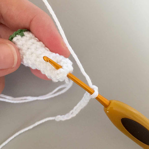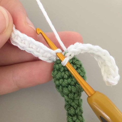 Join white with a standing sc into the back loop of a st of the last rnd of the stem.