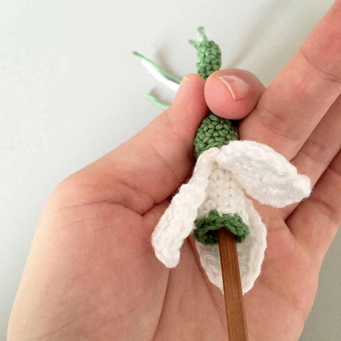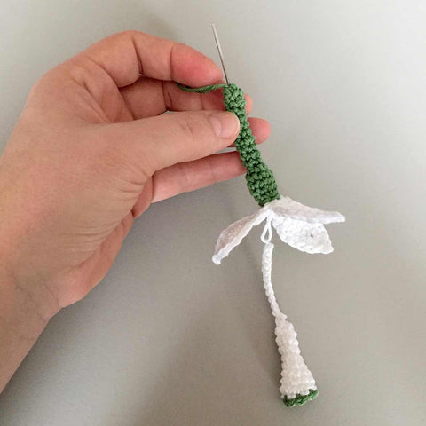 Finally, sew the flower on top of the flower bulb using the remaining yarn tails on the bottom of the stem.